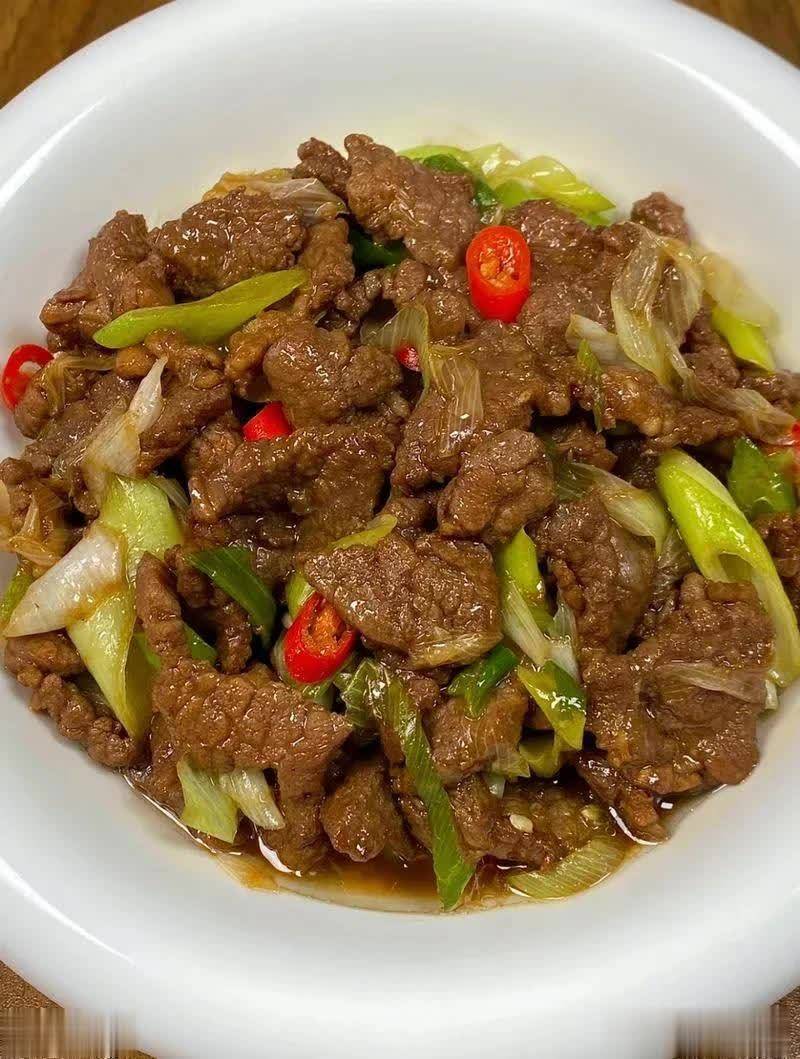 1. 牛肉切片,用盐、料酒、生抽、淀粉腌制 15 分钟。葱切段,准备姜蒜片。