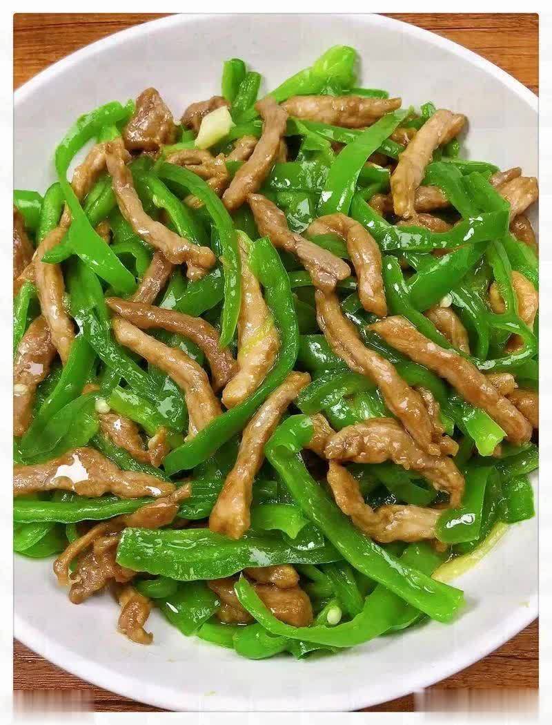 食材准备:青椒 3 个、猪里脊肉 150 克、姜蒜适量、生抽、料酒、淀粉、盐、鸡精